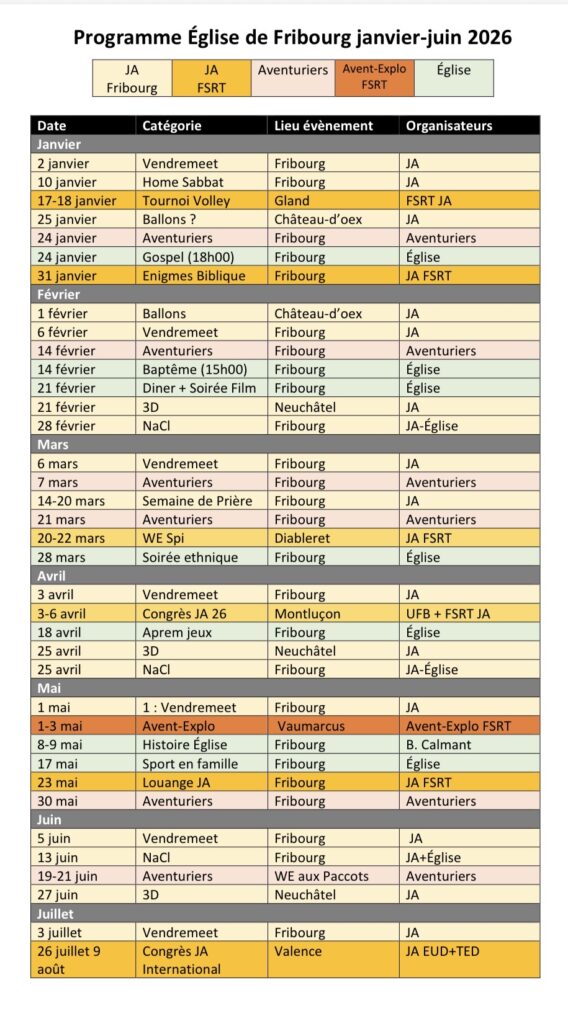 Tous les rencontres seront dans l’Église de Fribourg, Rue Louis Chollet, 4.